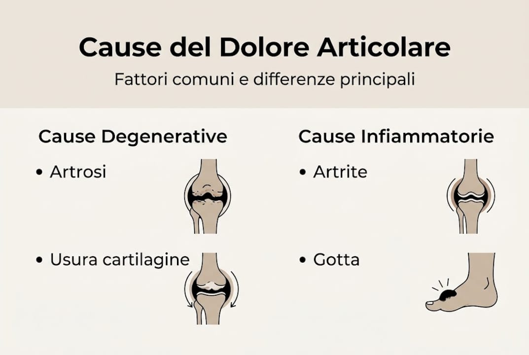 Il dolore articolare cronico colpisce milioni di persone, eppure viene ancora troppo spesso liquidato come "normale invecchiamento". In realtà, le sue origini sono molto più varie: dall'artrosi degenerativa alle malattie autoimmuni, dalla gotta alla fibromialgia, fino ai sovraccarichi biomeccanici accumulati nel tempo. Secondo i Manuali MSD, le cause principali includono condizioni molto diverse tra loro, ognuna con meccanismi e trattamenti specifici. Capire da dove viene il dolore è il primo passo per affrontarlo nel modo giusto. Questo articolo ti guida attraverso le cause, i segnali da non ignorare e le opzioni terapeutiche oggi disponibili.