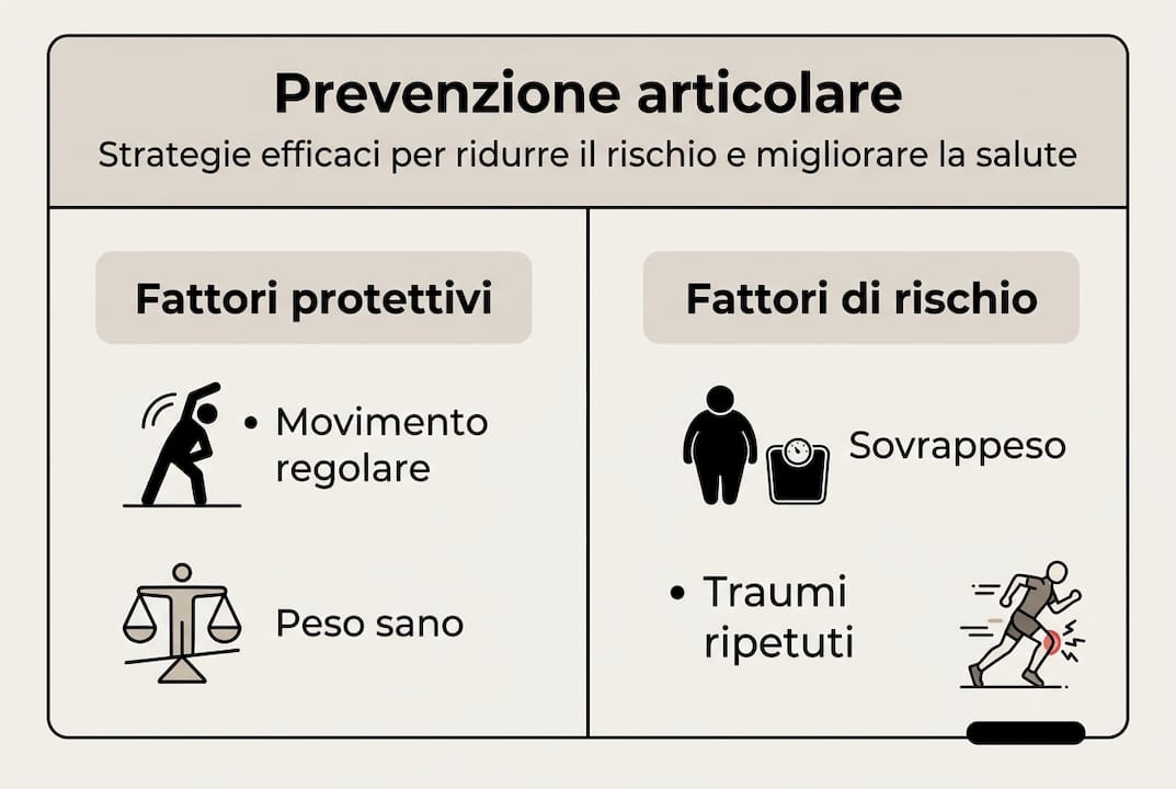 Perdere solo 5-10 kg riduce fino al 50% il rischio di artrosi al ginocchio. Eppure la maggior parte delle persone aspetta di sentire dolore prima di agire. La degenerazione articolare non riguarda solo gli anziani e non si risolve con una pillola: riguarda le scelte che fai ogni giorno, a tavola, in palestra e sul divano. In questa guida trovi strategie validate dalla scienza, miti da sfatare e consigli pratici per proteggere le tue articolazioni prima che il danno diventi irreversibile. Niente formule magiche, solo approcci che funzionano davvero.